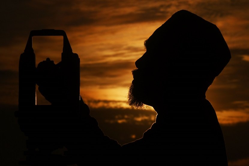 Tim rukyatul hilal melakukan pemantauan rukyatul hilal di di Balai Rukyat Bukit Condrodipo, Gresik, Jawa Timur, Kamis (14/6).                                                         Foto: Antara/Zabur Karuru