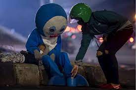 Seorang warga memberikan uang kepada pengamen badut Fajar (17) di pinggir Jalan TB Simatupang, Cilandak, Jakarta Selatan, Selasa (31/8/2021). Beragam cara ditempuh warga untuk bertahan hidup selama pandemi salah satunya dengan menjadi pengamen badut yang kini kian marak di Ibu Kota. ANTARA FOTO/Sigid Kurniawan/aww.