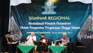 “Selain ilmu agama, life skill juga perlu diperkuat agar pondok pesantren memiliki ketrampilan,” ujar Kamaruddin saat memberikan pidato kunci dalam seminar nasional ‘Revitalisasi Pondok Pesantren untuk Penguatan Perguruan Tinggi Islam’ di Graha Institut Agama Islam Negeri Surakarta, Kamis (19/10/2017).
