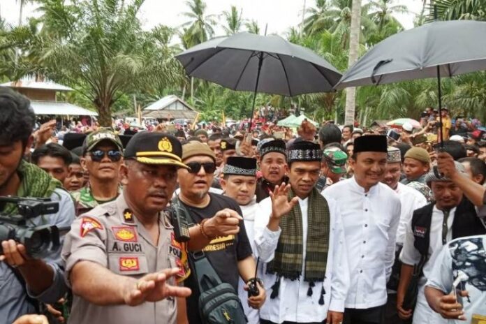 Ustad Abdul Somad di Padang Gajah Mati, Jorong Sago, Nagari Manggopoh, Kecamatan Lubukbasung, Kabupaten Agam, Senin (4/3/2019). (ANTARA SUMBAR/ Yusrizal)