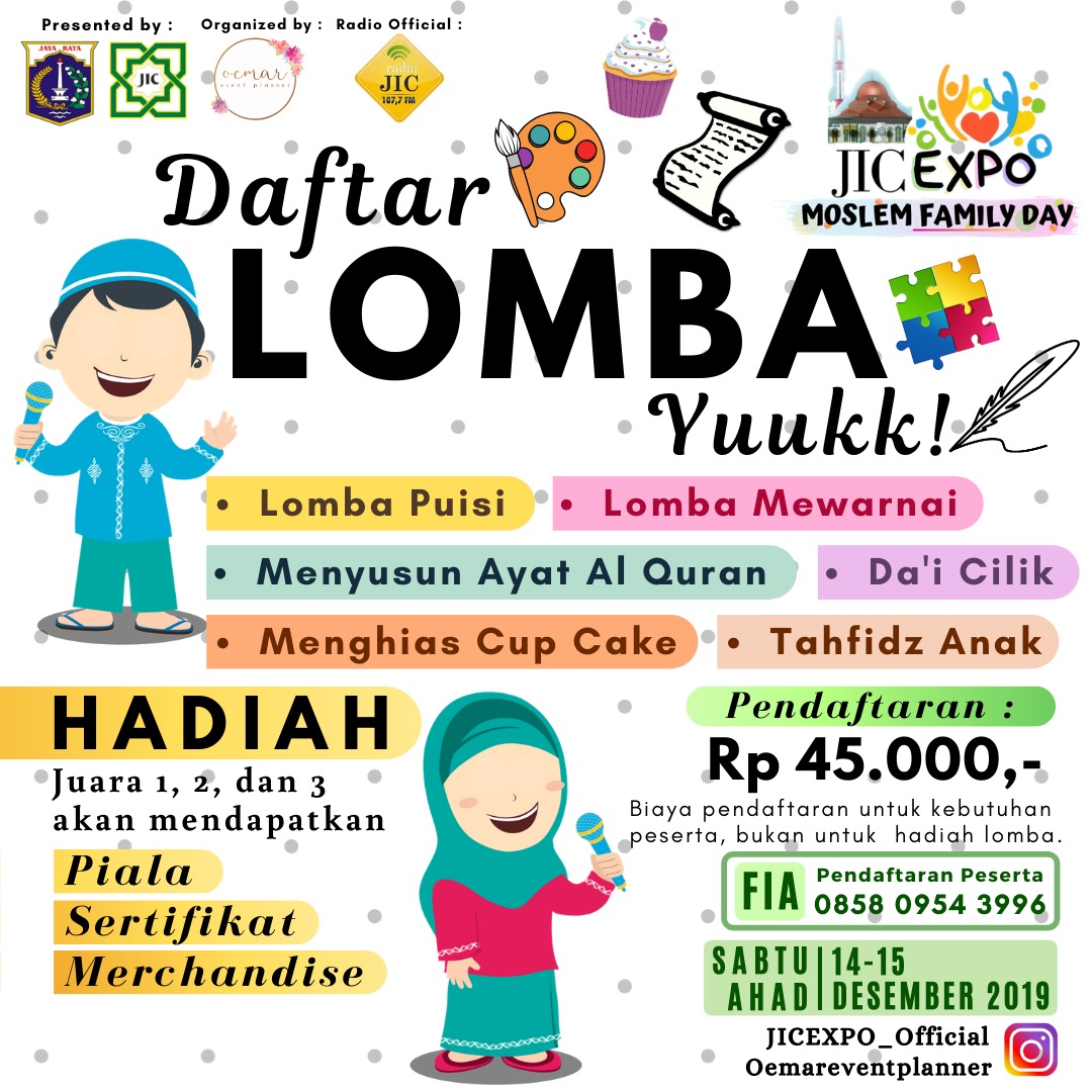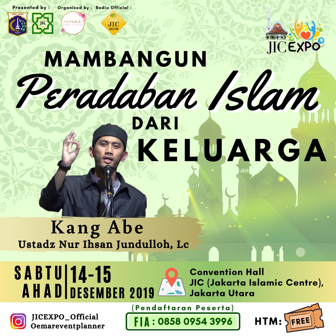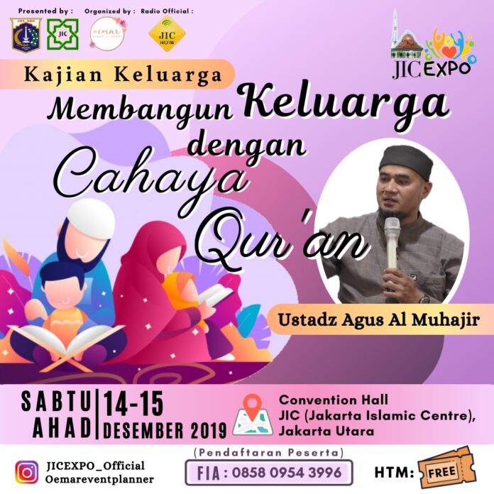 JIC – Jakarta Islamic Centre (JIC) Expo 2019 kembali hadir dengan tema “Moslem Family Day” yang akan terselenggara selama dua hari (14-15 Desember) di Convention Hall dan area Gedung Sentral Bisnis JIC. Acara ini diselenggarakan oleh Divisi Pengembangan Bisnis JIC bekerjasama dengan Oemar Event Planner. Inilah rangkaian kegiatan acara JIC Expo 2019. Informasi lebih lanjut seputar kegiatan JIC Expo dapat mengikuti Instagram @jicexpo_official atau hubungi Fia (0858 0954 3996).