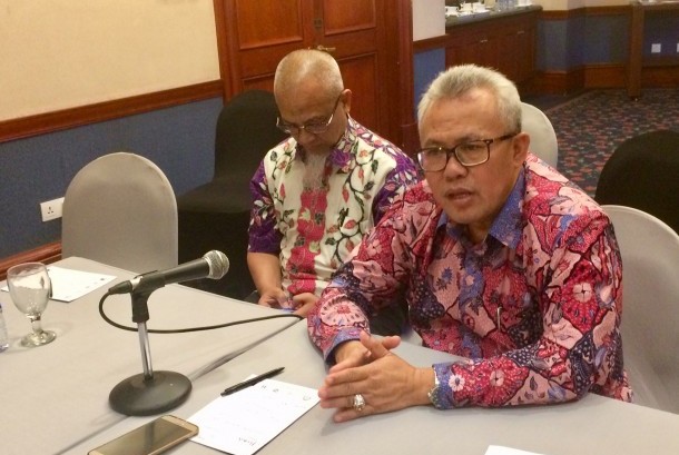 Ketua Umum Himpu Baluki Ahmad memberikan keterangan pers terakait penyelenggaraan Muker Himpuh di Surabaya, (9/10).