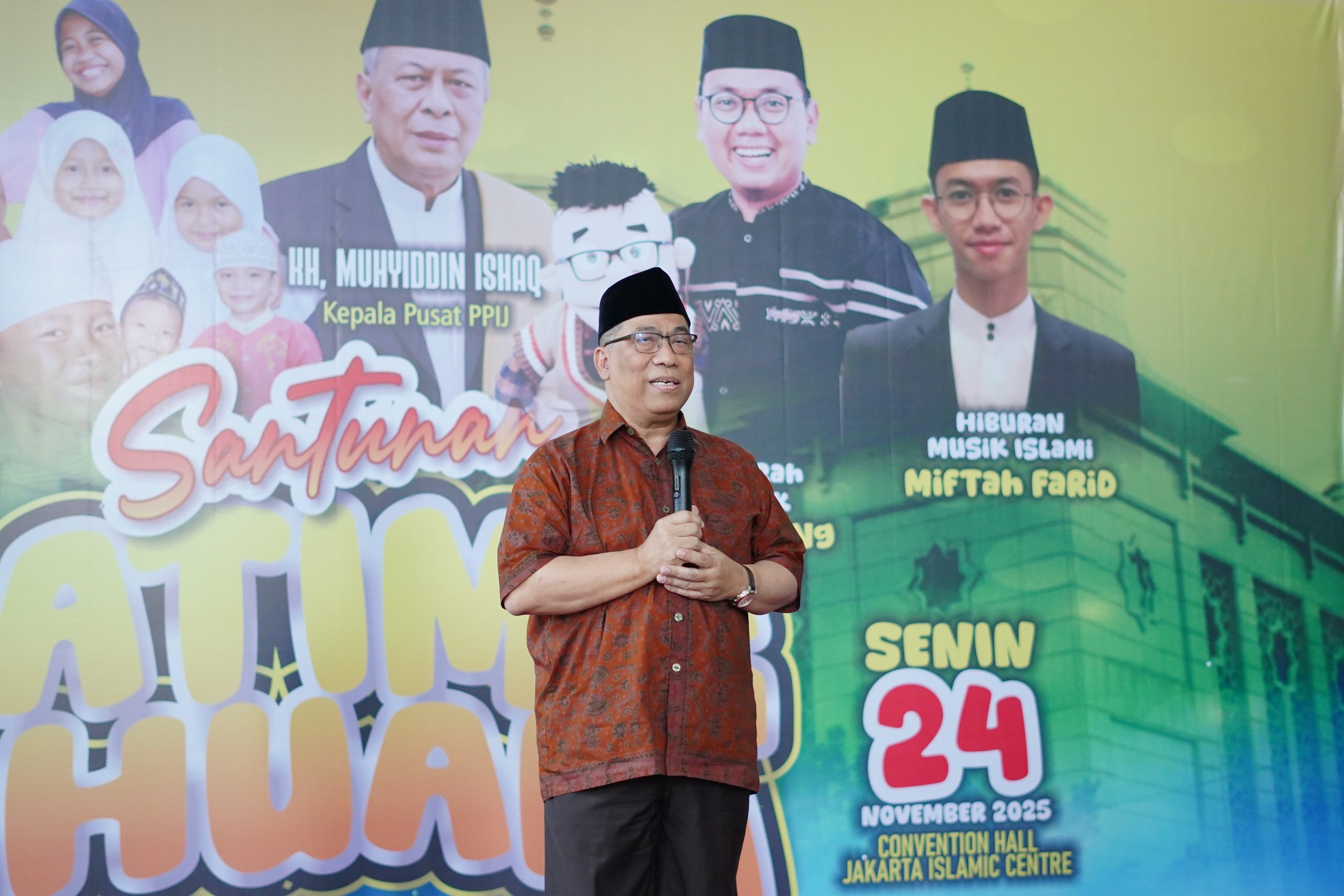 Kepala Pusat Pengkajian dan Pengembangan Islam Jakarta, KH. Muhyiddin Ishaq yang diwakili kehadirannya oleh Prof. H. Agus Suradika, Kepala Divisi Umum PPIJ/JIC, dalam sambutannya menegaskan bahwa perhatian kepada anak-anak yatim merupakan perintah agama yang harus dihayati dan diamalkan. Ia menyampaikan bahwa kegiatan ini menjadi wujud kepedulian JIC terhadap mereka yang membutuhkan perhatian dari masyarakat maupun negara.