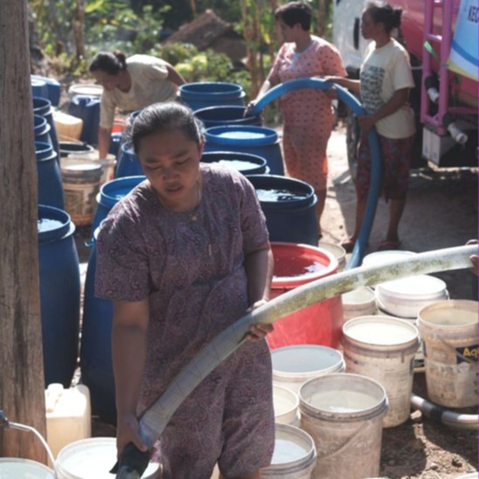 Katini dan sebagian besar tetangganya kini bergantung pada bantuan air bersih dari pemerintah. Karena bantuan datang tak tentu hari, mereka terpaksa membeli satu tangki air berisi 6000 liter seharga Rp330 ribu.