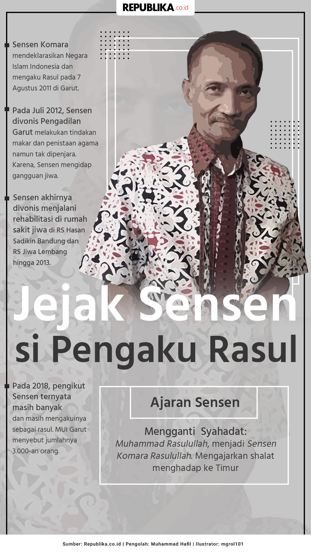 News UpdateIslam Indonesia JEJAK SENSEN SI PENGAKU RASUL December 11, 2018 0 526 FacebookTwitterPinterestWhatsApp “Meski dinyatakan mengalami gangguan jiwa, jumlah pengikut Sesen terus bertambah” Senin 10 Des 2018 00:10 WIB JIC, JAKARTA-