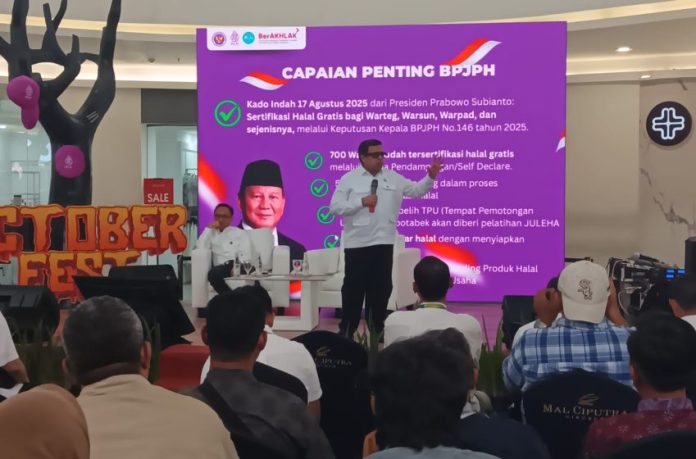 “Kado Indah 17 Agustus 2025 dari Presiden Prabowo Subianto, yakni Sertifikasi Halal Gratis bagi warteg, warsun, warung sejenis melalui Keputusan Kepala BPJPH No.146 Tahun 2025 yang berlaku sejak 8 Juli 2025 lalu.” kata Kepala BPJH Ahmad Haikal Hasan di Jakarta, Senin (6/10/2025).