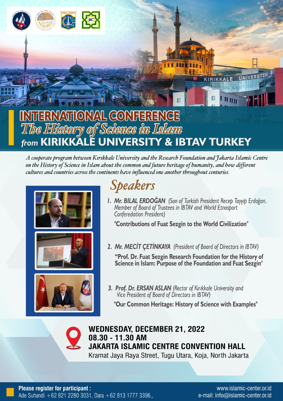 JIC– Pusat Pengkajian dan Pengembangan Islam Jakarta (PPIJ) yang lebih dikenal dengan nama Jakarta Islamic Centre (JIC) akan menggelar Konferensi Internasional yang mengangkat tema besar “The History of Science in Islam”.