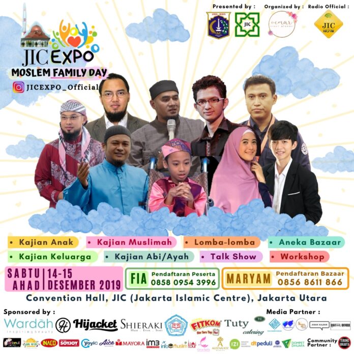 JIC – Divisi Pengembangan Bisnis Jakarta Islamic Centre yang bekerjasama dengan Oemar Event Planner, menyelenggarakan JIC Expo 2019 ke 7 dengan tema Muslim Family Day, yang berlangsung selama 2 hari, pada tanggal 14 dan 15 Desember 2019, bertempat di gedung Convention Hall JIC, Jl. Kramat Jaya Tugu Utara Koja, Jakarta Utara.