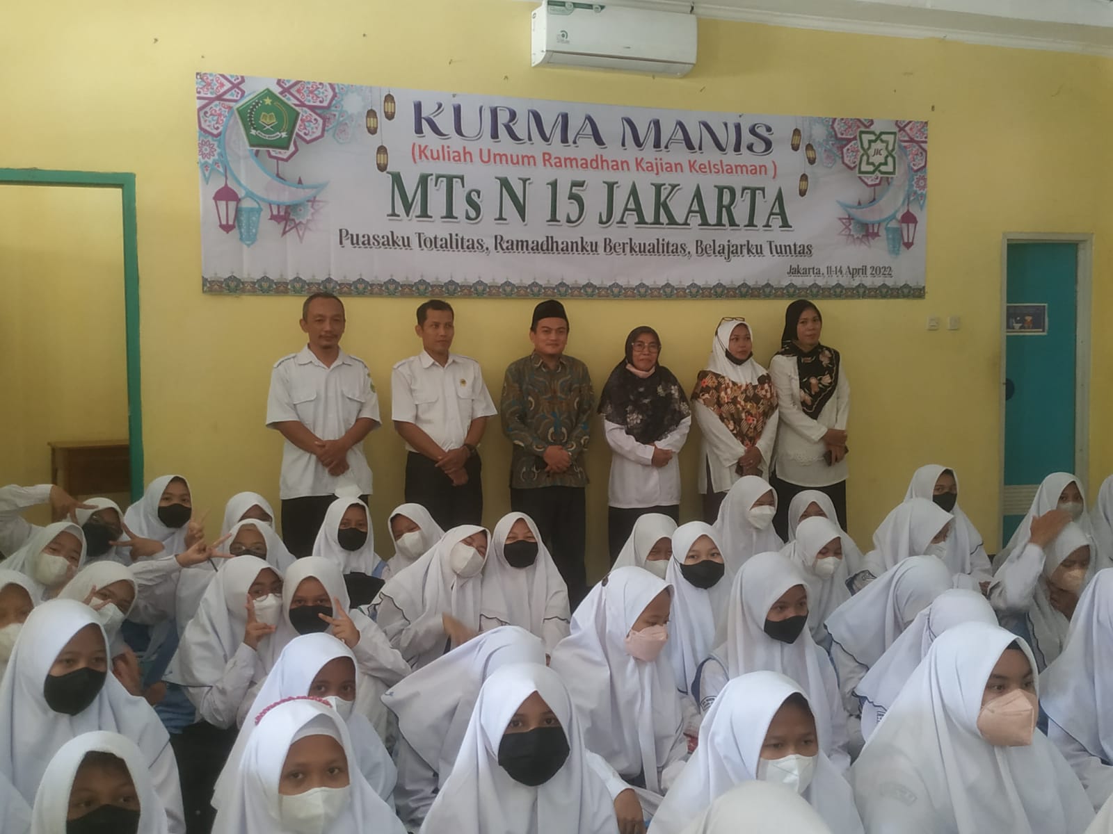 JIC- Menjadi rangkaian agenda Amaliah Ramadhan Jakarta Islamic Centre, Subdivisi Pembinaan Remaja dan Anak bekerjasama dengan MTSN 15 Jakarta Utara menggelar Kurma Manis (Kuliah Umum Ramadhan Kajian keIslaman) yang dilaksanakan selama tiga hari, yang dimulai pada Senin (11/4).