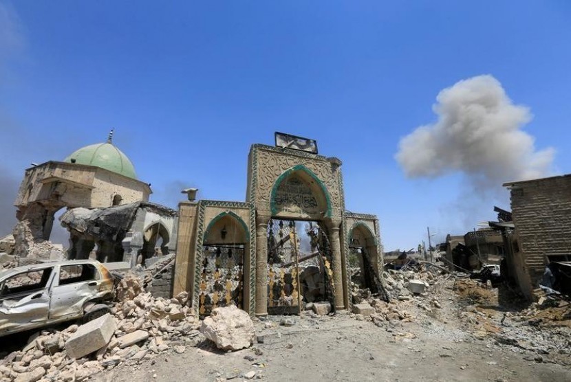 Masjid al-Nuri yang menjadi kebanggaan Kota Mosul sebagai masjid tua berusia 850 tahun hancur ketika ISIS dikalahkan pada 2017. Hanya reruntuhan besi dan batu yang tersisa.
