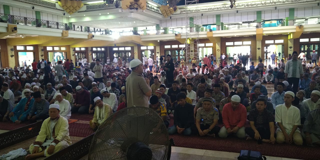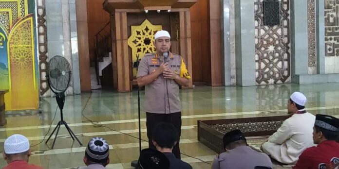 Kapolres setelah melaksanakan sholat Jumat berjamaah memberikan sambutan berkaitan dengan situasi keamanan di Jakarta Utara dan pesan dalam menjelang Hari Raya Idul Fitri 1440 H.
