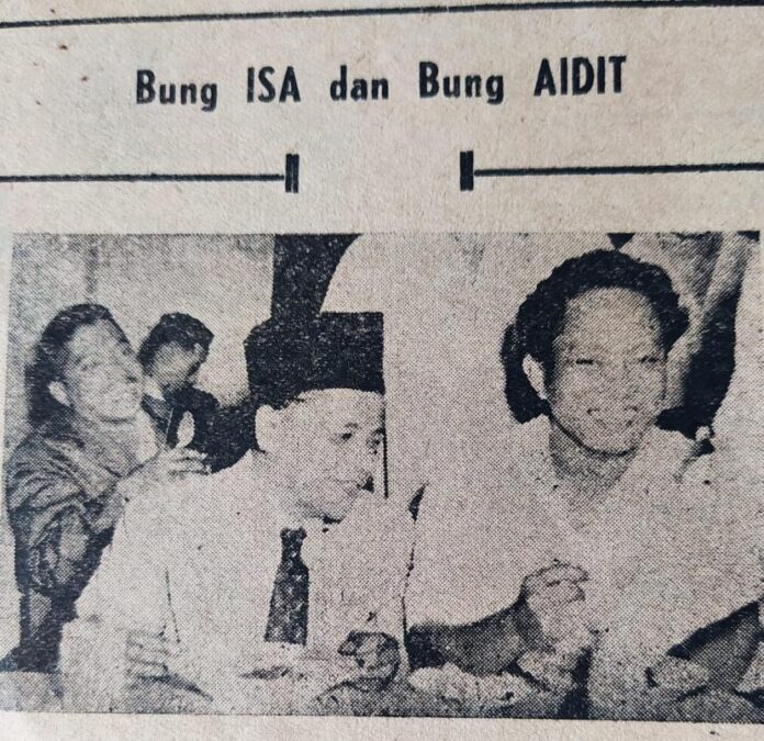 Tokoh ulama Islam Isa Anshari dan tokoh utama PKI DN Aidit minim kopi berbincang akrab di kantin kala DPR maish berkantor di Lapangan Bantteng pada tahun 1950-an.     Foto: Ridwan Saidi