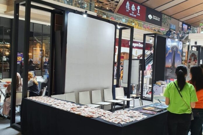 Travel stand non PIU dan PIHK di Mall Casablanca yang dipakai untuk menawarkan jamaah umrah di Mall Casabalancaka yang sudah dikosongkan ketika tersebar para anggota Himpuh akan melakukan penggrebegan, Ahad (22//2019).