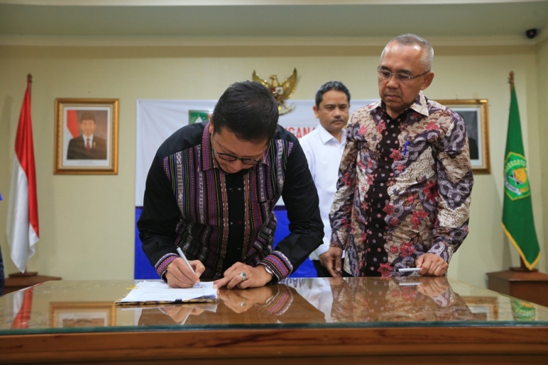 Menag Lukman Hakim Saifuddin dan Gubernur Riau Arsyadjuliandi Rachman Menandatangani Berita Serah Terima Barang Milik Daerah dari Pemerintah Provinsi