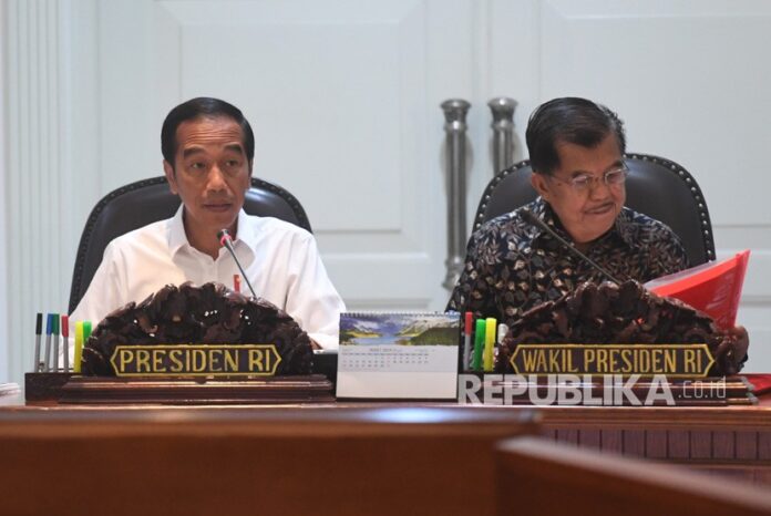 Presiden Joko Widodo (kiri) didampingi Wakil Presiden Jusuf Kalla (kanan) memimpin rapat terbatas di Kantor Presiden, Jakarta, Selasa (19/3/2019).