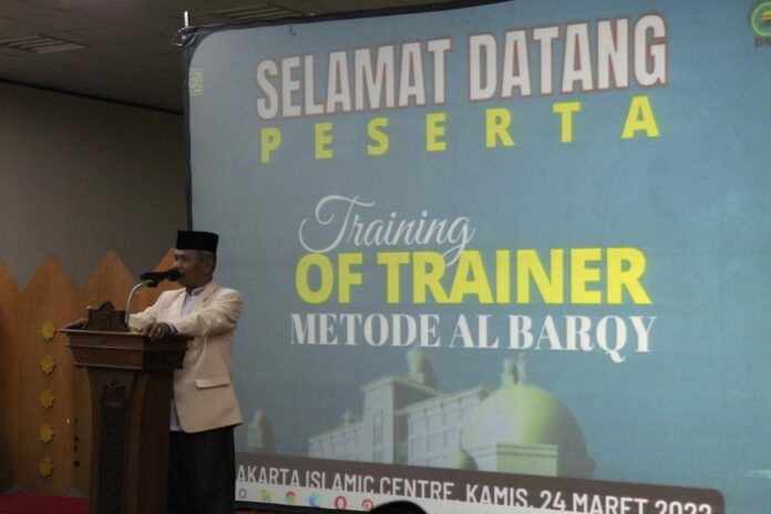 JIC– Kita jangan malu berstatus sebagai guru ngaji, pernyataan tersebut dikemukakan Ketua Dewan Masjid DKI Jakarta KH Ma’mun Al Ayubi dalam sambutannya di acara Training of Trainer Metode Baca Cepat Al-Qur’an metode Al-Barqy di Jakarta Islamic Centre, Kamis (24/3).