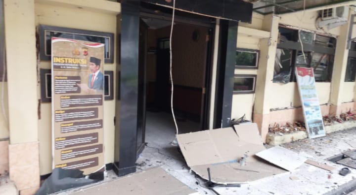 Saat itu, pelaku memaksa mendekati anggota polisi yang sedang melaksanakan apel. Kemudian pelakusempat dihalau masuk oleh beberapa anggota polisi.