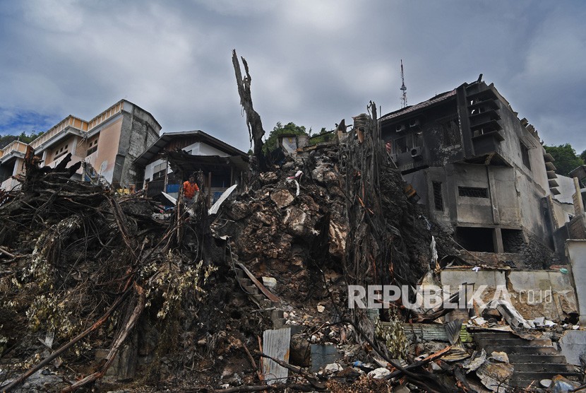 Warga membersihkan sisa kebakaran di halaman rumahnya yang hangus terbakar di Kota Jayapura, Papua, Minggu (1/9/2019). Kondisi Kota Jayapura mulai kondusif pascaunjuk rasa warga Papua pada Kamis (29/8/2019). ANTARA FOTO/Zabur Karuru/foc.