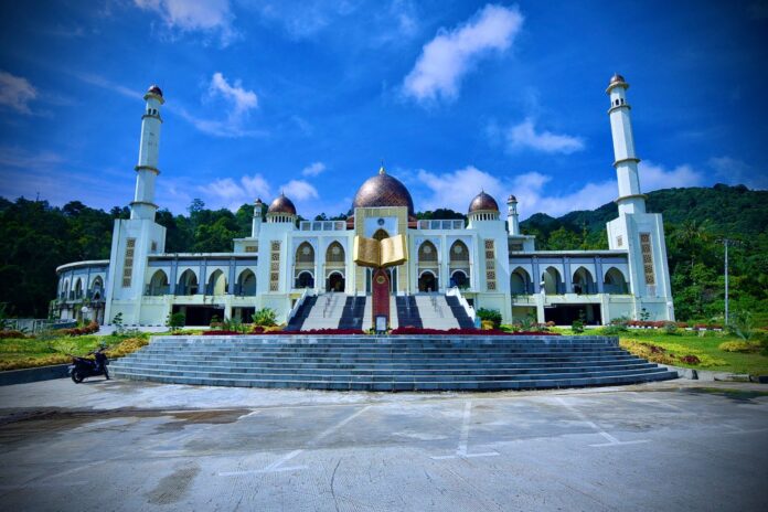Islamic Center Kota Padang Panjang, Sumatra Barat, Rabu (24/7/2022). Monumen Al Quran tersebut merupakan ikon baru Padang Panjang sebagai Kota Serambi Mekkah yang dibangun oleh alumni angkatan 81 SMP se-kota itu. Kisah di Balik Diresmikannya Muhammadiyah Padang Panjang pada 1926. Foto : InfoPublik.id