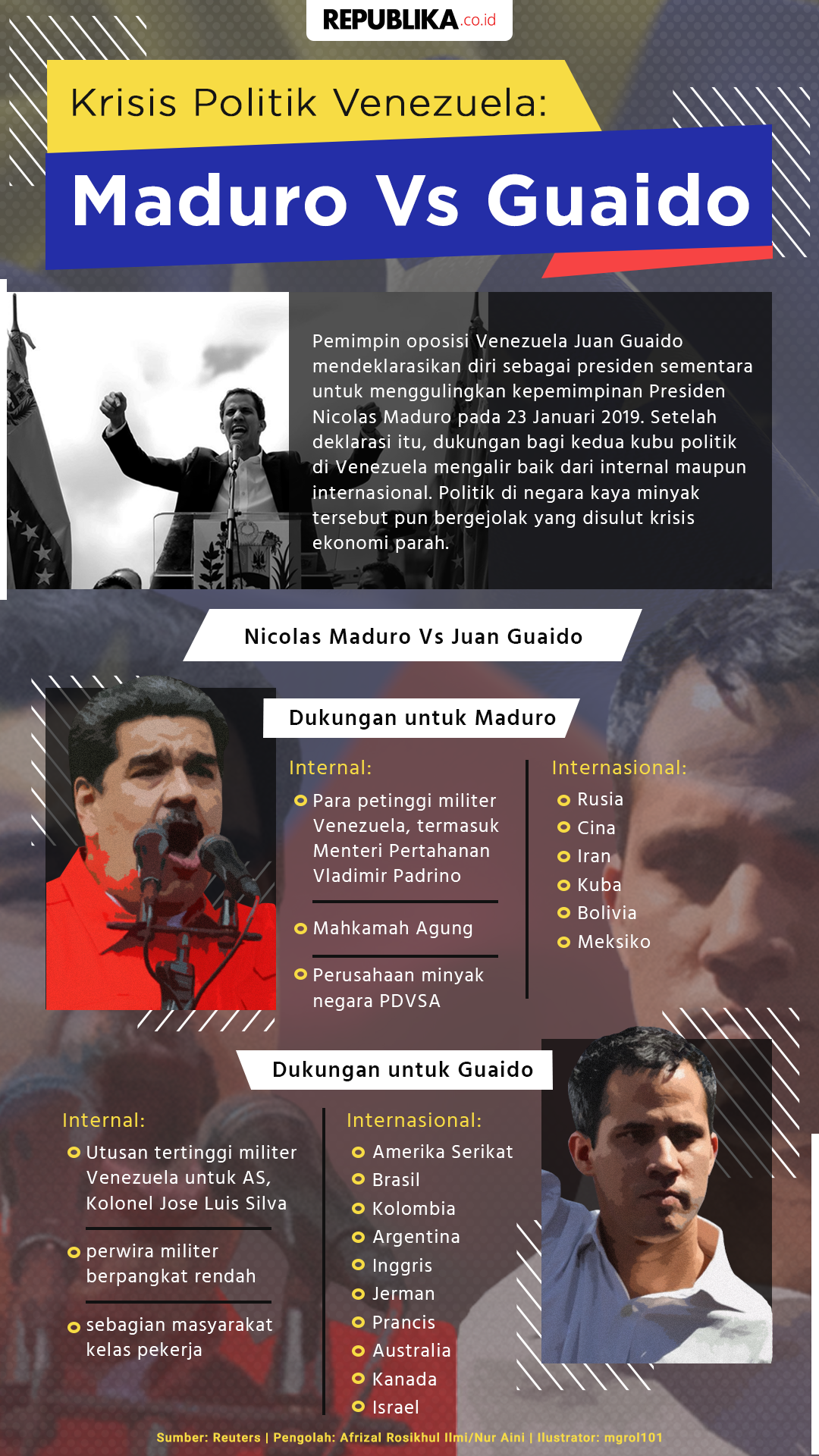 News Update KRISIS POLITIK VENEZUELA: MADURO VS GUAIDO February 1, 2019 0 225 FacebookTwitterPinterestWhatsApp Pemimpin oposisi Juan Guaido ingin menggulingkan pemerintahan Nicolas Maduro. JIC, JAKARTA– sumber : republika.co.id