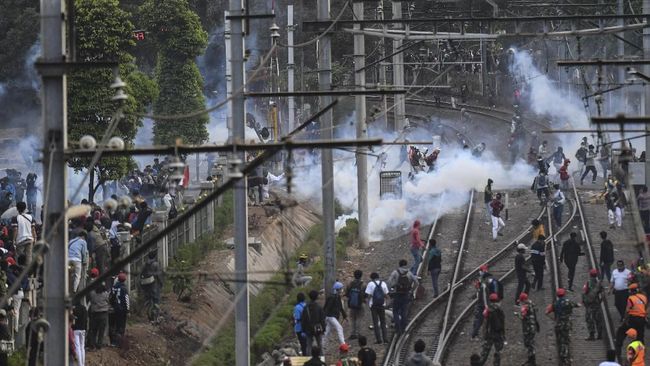 “Iya [massa memulai kerusuhan], melawan petugas, menutup tol merusak fasilitas umum dilarang dalam berunjuk rasa,” kata Argo kepada CNNIndonesia.com via pesan singkat, Selasa.