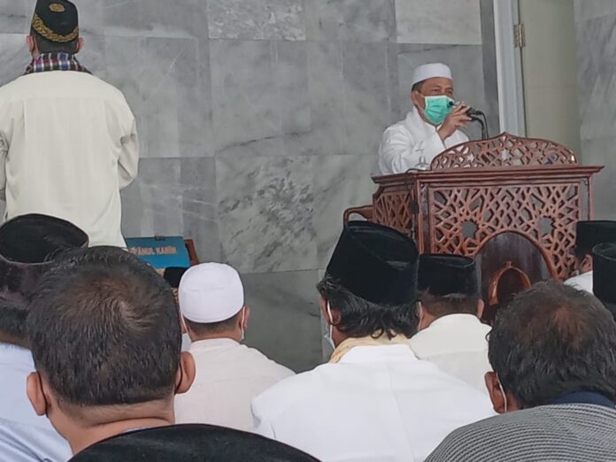 JIC- Kepala Pusat Pengkajian dan Pengembangan Islam Jakarta KH. Muhammad Subki Lc, Menyampaikan khutbah Jumat di Masjid Al Hamra, Jl. Mengkudu, Lagoa, Koja Jakarta Utara (18/2)