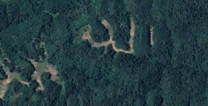 Lafaz Allah yang terlihat di aplikasi google earth di daerah Kota Sawahlunto yang viral di berbagai sosial media – (Pantuan Google Earth)
