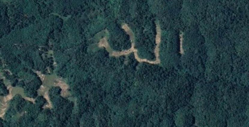 Lafaz Allah yang terlihat di aplikasi google earth di daerah Kota Sawahlunto yang viral di berbagai sosial media                                                                              Foto: Pantuan Google Earth