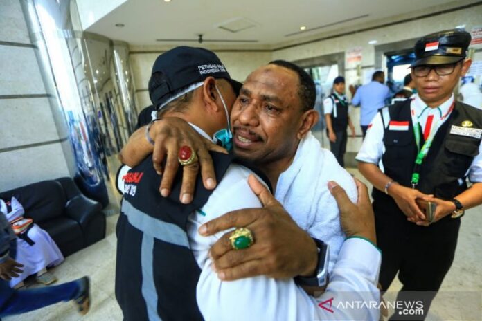 Saat yakin tak salah orang, ia langsung memeluk seseorang yang sedang dikerubuti lantaran merupakan pembimbing ibadah, K.H. Umar Bauw.