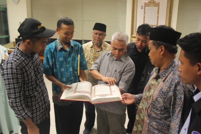 Penjelasan Mushaf Betawi Khas JIC oleh Kepala Sub Divisi Penyiaran, Paimun A. Karim (dua dari kiri)