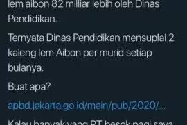 “Ternyata Dinas Pendidikan mensuplai dua kaleng lem aibon per murid setiap bulannya. Buat apa?,” tulis William pada Selasa malam.