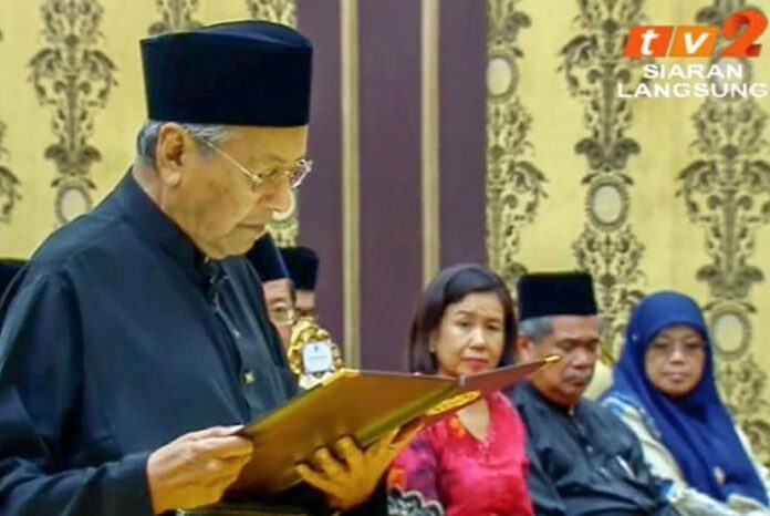 Seperti dilansir Malaysiakini.com, Mahathir selaku pimpinan Pakatan Harapan ini mengenakan jubah Melayu hitam dan emas. Ia disumpah sebagai perdana menteri ketujuh oleh Yang di-Pertuan Agong, Sultan Muhammad V, di Istana Negara di Kuala Lumpur.