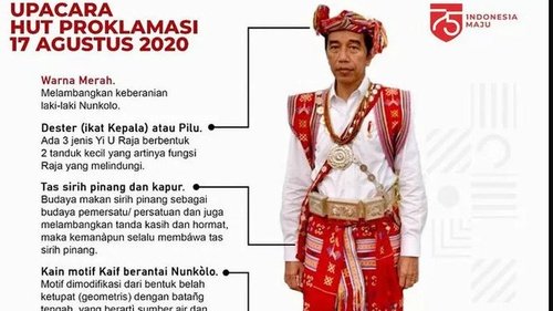 Menurut keterangan Tim Komunikasi Media HUT RI pada Senin, kain itu bermotif Kaif berantai Nunkolo.