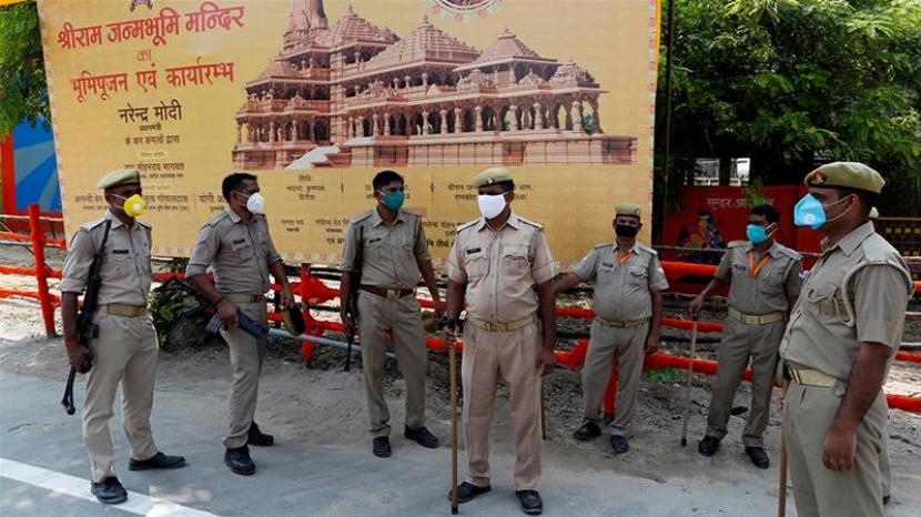 Keterangan foto:Â Petugas polisi tengah menjaga masjid Babri pada 29 Oktober 1990, atau dua tahun sebelum masjid ini di bom oleh masa Hindu. [File: Barbara Walton/AP Photo]