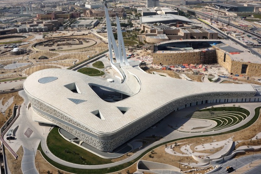 JIC — Tidak hanya tempat ibadah, masjid ini juga menjadi pusat kajian bagi para mahasiswa. Masjid Education City terletak dalam Kompleks Fakultas Studi Islam Qatar (QFIS).