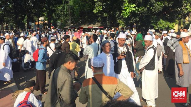 Dari pantauan CNNIndonesia.com, Senin (7/5), ratusan orang berkerumun di sekitar gedung PTUN Jakarta di kawasan Cakung, hingga mendekati kantor Wali Kota Jakarta Timur. Kebanyakan dari mereka mengenakan baju putih dan peci. Sebagian mengaku bukan anggota HTI dan datang dari luar kota seperti Bandung dan Tangerang.