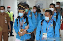 Atlet wushu asal Jambi Melisa Try Andani yang meraih medali emas kelas 56kg putri di PON XX Papua tiba di Jambi. ANTARA/HO
