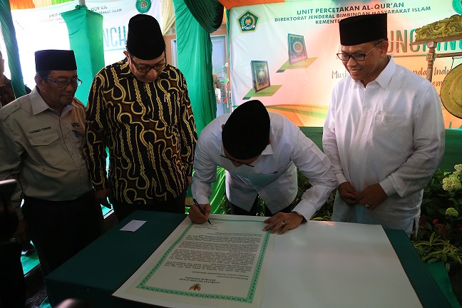 JIC, BOGOR — Menteri Agama, Lukman Hakim Syaifuddin meluncurkan 120 Ribu Alquran standar Indonesia di Gedung Unit Pencetak Al-Quran (UPQ) Ciawi, Bogor, Jawa Barat, Selasa (24/10). Menurut Lukman, pencetakan Alquran standar Indonesia ini telah dicetak dua kali.