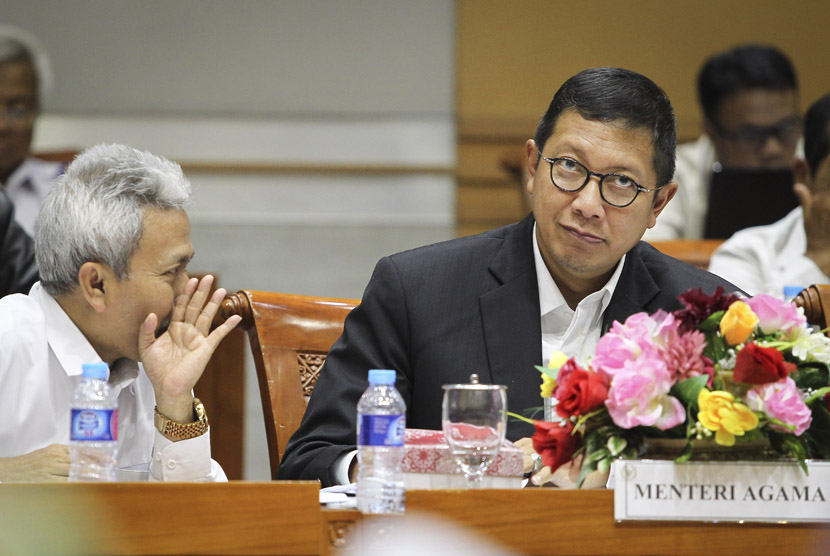 Menteri Agama Lukman Hakim Saifuddin (kanan) saat mengikuti rapat kerja dengan Komisi VIII DPR di Kompleks Parlemen, Senayan, Jakarta, Senin (26/11/2018). Rapat tersebut membahas laporan penyelenggaraan Ibadah Haji tahun 1439 H/2018. ANTARA FOTO/Dhemas Reviyanto/wsj.