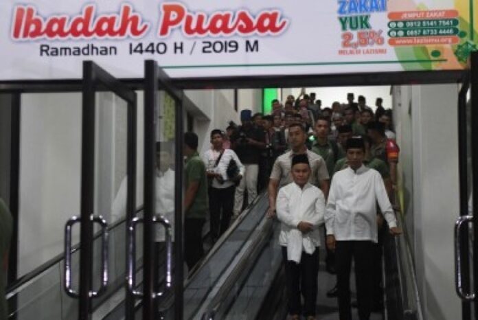 Presiden Joko Widodo (kanan) bersama Gubernur Kalteng Sugianto Sabran (kiri) berjalan keluar usai menunaikan shalat tarawih di Masjid Darul Arqam, Palangka Raya, Kalimantan Tengah, Selasa (7/5/2019).                                                       Foto: ANTARA FOTO/Akbar Nugroho Gumay