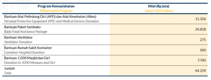 Selain itu, BPKH juga memberikan bantuan alat pelindung diri (APD), ruang isolasi, ambulans dan layanan kesehatan, infrastruktur listrik darurat, pelayanan pemulihan kondisi mental, rohani dan psikologis korban, pembangunan tempat ibadah sementara, alat pembersihan masjid, biaya operasional masjid, fasilitas pendidikan, fasilitas umum lainnya serta kendaraan pendukung operasional kegiatan penanganan tanggap darurat.
