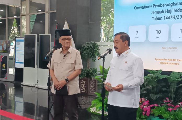 Jakarta (islamic-center.or.id)–Menteri Haji dan Umrah, Mochamad Irfan Yusuf, menerima kunjungan Menteri Imigrasi dan Pemasyarakatan, Agus Andrianto, di Kantor Kementerian Haji dan Umrah, Jalan MH Thamrin Nomor 6, Jakarta Pusat, Rabu (15/4/2026).