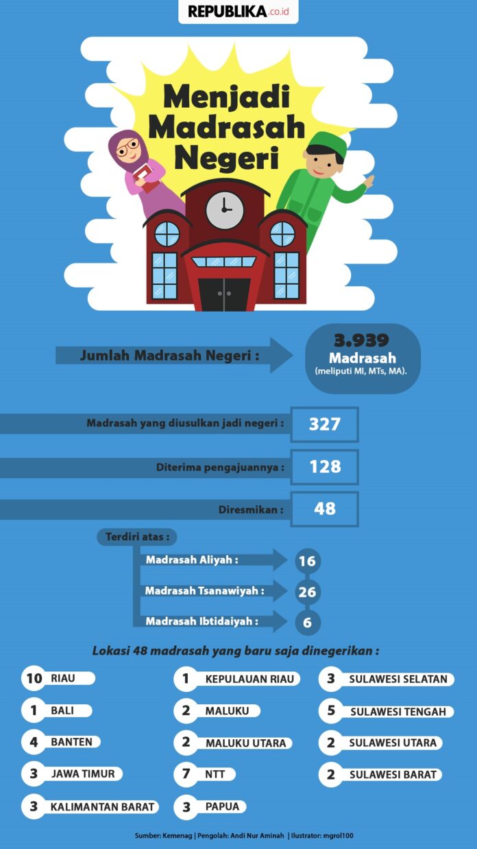 News UpdateIslam Indonesia MENJADI MADRASAH NEGERI November 5, 2018 0 396 FacebookXPinterestWhatsApp Kemenag baru-baru ini meresmikan status penegerian 48 madrasah. JIC, JAKARTA- sumber : republika.co.id