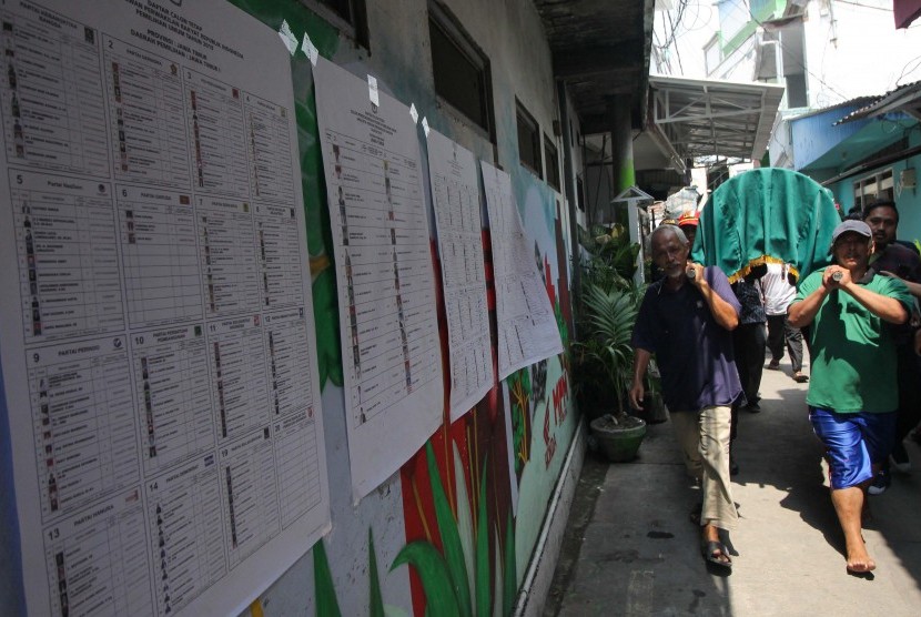 Ilustrasi warga mengusung jenazah anggota Kelompok Penyelenggaran Pemungutan Suara (KPPS) yang meninggal diduga karena kelelahan setelah menjalankan tugas di TPS.