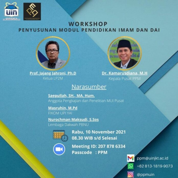 JIC, TANGSEL — Pusat Pengabdian kepada Masyarakat (PPM) UIN Syarif Hidayatullah mengadakan workshop penyusunan Modul Pendidikan Imam dan Dai untuk dikirim ke luar negeri maupun dalam negeri, pekan lalu.