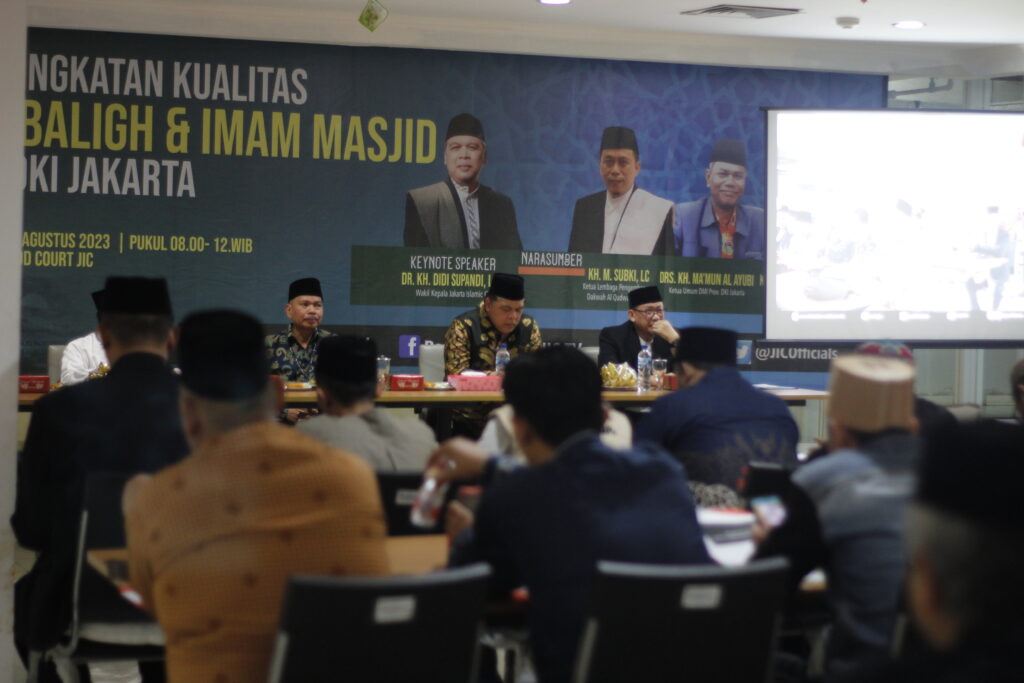 “Dan Divis Takmir ini melihat perlunya diadakan pelatihan peningkatan mutu para imam, mubaligh, dan mubalighoh,” terang Kiai Didi yang disampaikannya dalam pembukaan Pelatihan Kualitas Mubaligh dan Imam Masjid Se-DKI Jakarta, di Ruang food court Jakarta Islamic Centre, Kamis (10/8/2023).