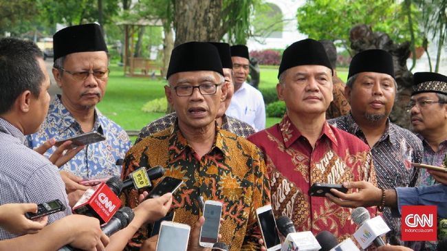 Ketua Umum PP Muhammadiyah Haedar Nasir tak sepakat dengan Wapres Ma’ruf Amin soal soal radikalisme di PAUD. (CNN Indonesia/Christie Stefanie)
