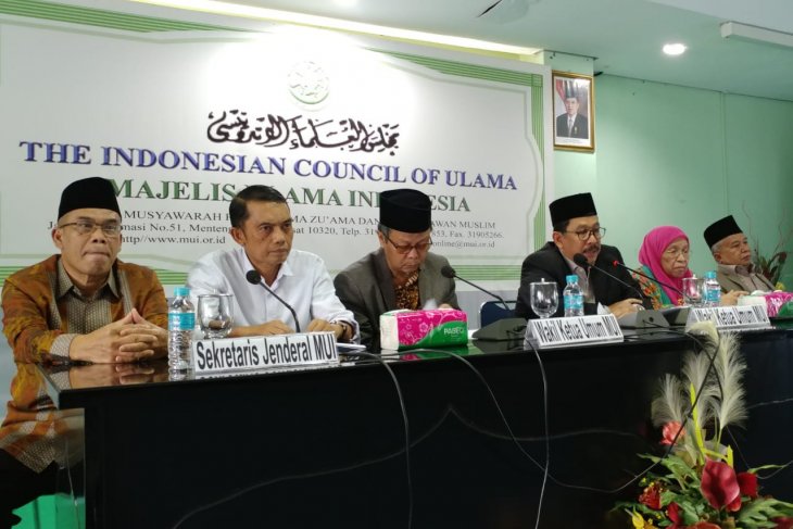 Konferensi pers Taushiyah Majelis Ulama Indonesia tentang Pemilu Serentak 2019 di Gedung MUI, Jakarta, Selasa (9/4/2019). (ANTARA News/ Anom Prihantoro)