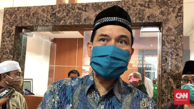 Mantan Sekretaris Umum FPI, Munarman yang didakwa telah menggerakkan orang melakukan tindak pidana terorisme menyatakan keberatan atas dakwaan Jaksa Penuntut Umum (JPU). Foto: CNN Indonesia/Ramadhan Rizki Saputra