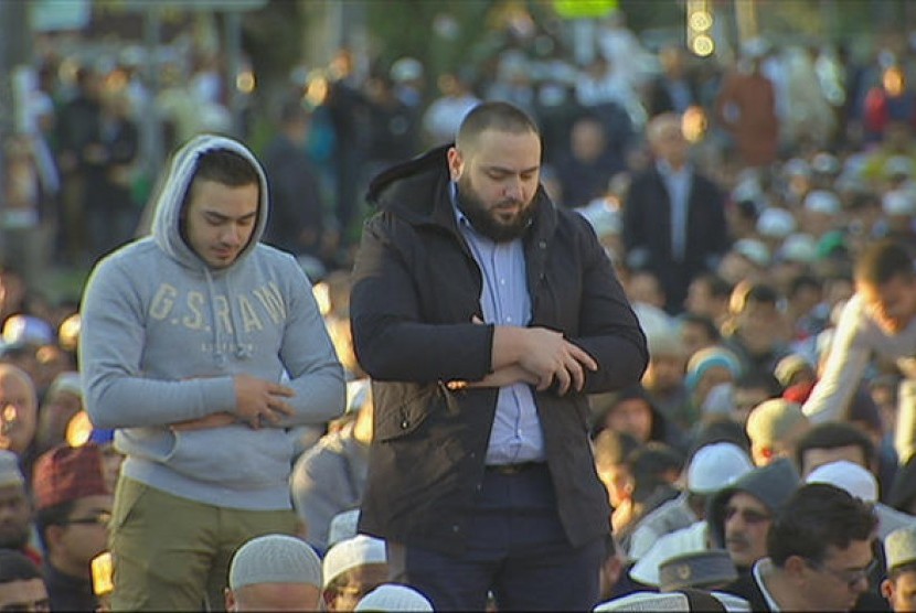 JIC, SYDNEY — Ribuan umat Islam berkumpul di luar Masjid Lakemba Sydney, Australia untuk merayakan Hari Raya Idul Adha 1437 H. Semua Muslim Australia melaksanakan shalat Id dan berkurban di hari raya terbesar kedua umat Islam ini.